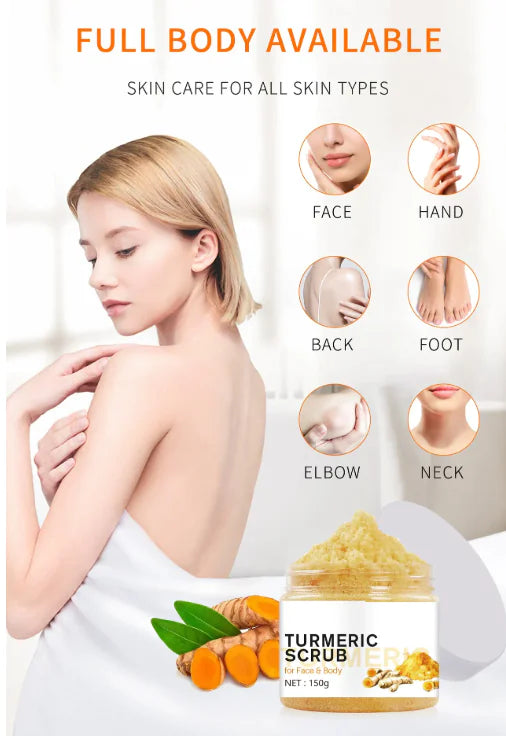 Revitalize your skin with this Turmeric Scrub designed to exfoliate and soften rough skin. Packed with the natural benefits of turmeric, it helps reduce dryness and leaves your skin feeling silky smooth and nourished.This turmeric-infused body scrub gently exfoliates the skin, removing dead cells and impurities while softening and soothing your body. Ideal for improving skin texture and achieving a healthy, glowing complexion.Treat your skin to the natural goodness of turmeric with this body scrub. It helps to soften rough, dry skin while rejuvenating and bringing out a healthy glow, leaving you with smoother, more radiant skin.The Turmeric Scrub is perfect for body care routines, offering exfoliation and nourishment to dry or rough skin. Infused with turmeric, it helps smooth the skin, leaving it soft, refreshed, and glowing.